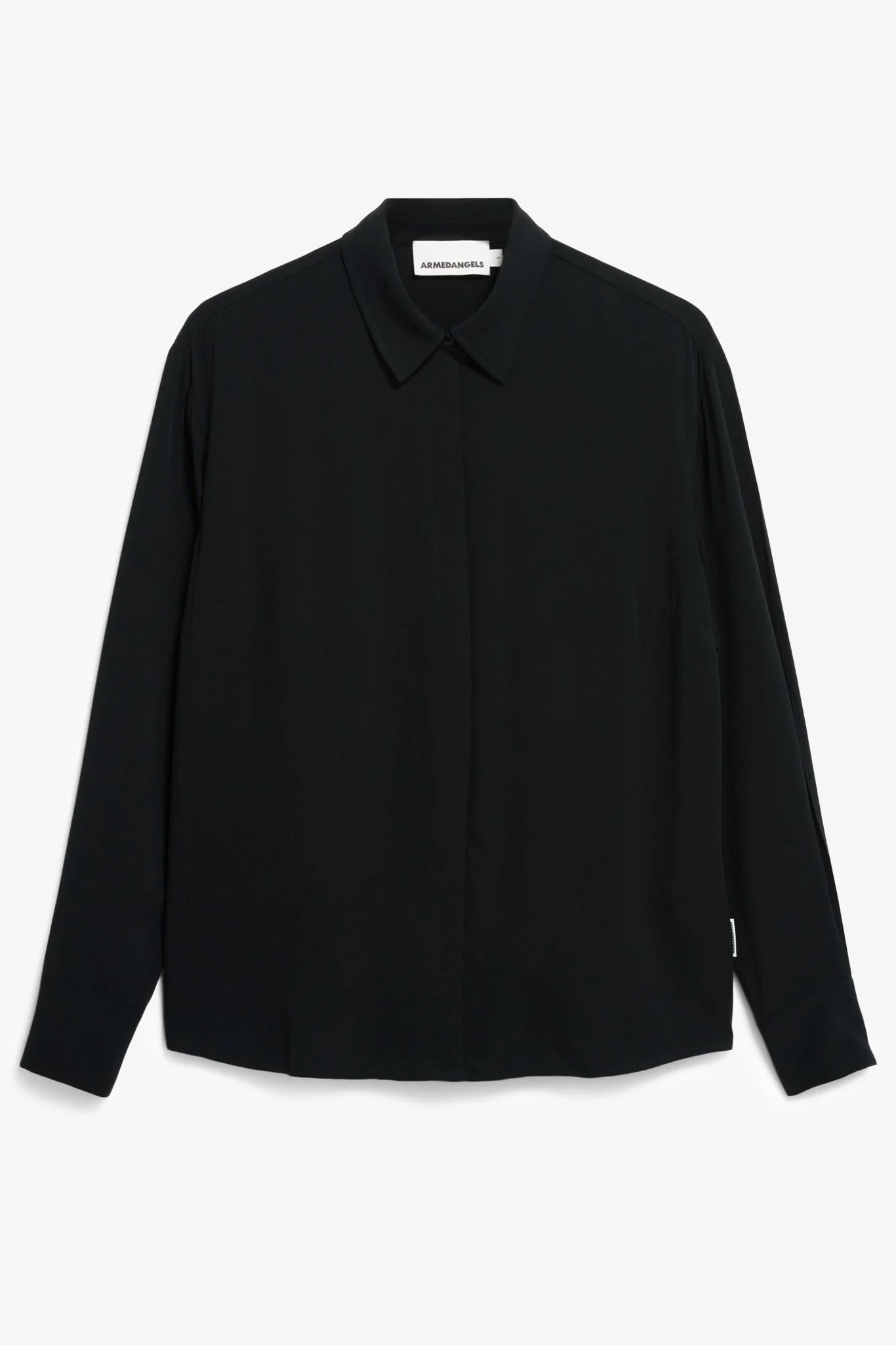- Einfarbige Langarm-Bluse aus mittelschwerem Webstoff
